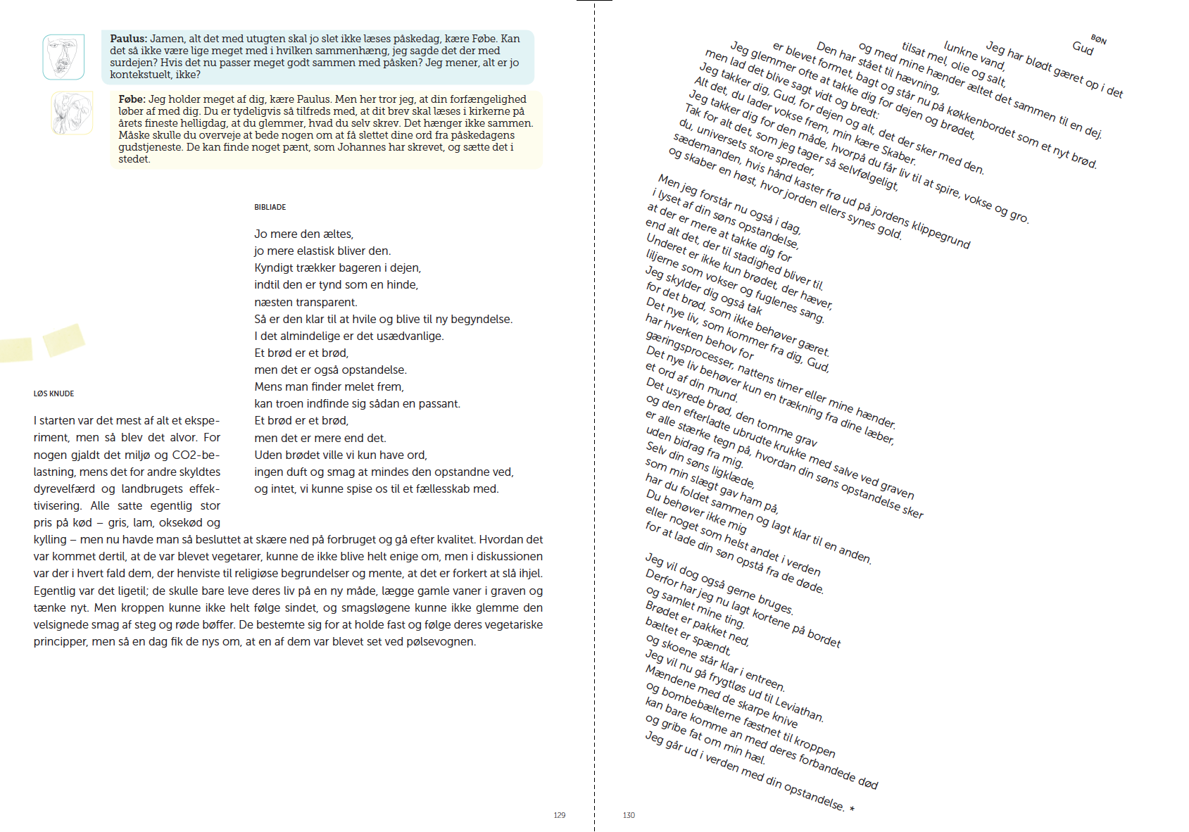 2018 Epistelklip, glimt, påstande og forskydninger ; tekst © Malene Bjerre, Jørgen Demant, Christiane Gammeltoft-Hansen, Jesper Hyldahl, Tine Illum, Bo Hakon Jørgensen, Kirsten Jørgensen og Elof Westergaard · illustrationer © Tea Bendix, Forlaget Eksistensen · 287 sider, illustreret. ISBN 978-87-410-0389-4