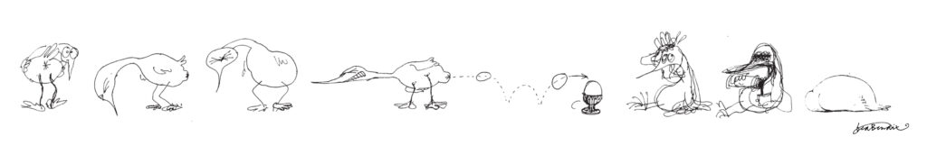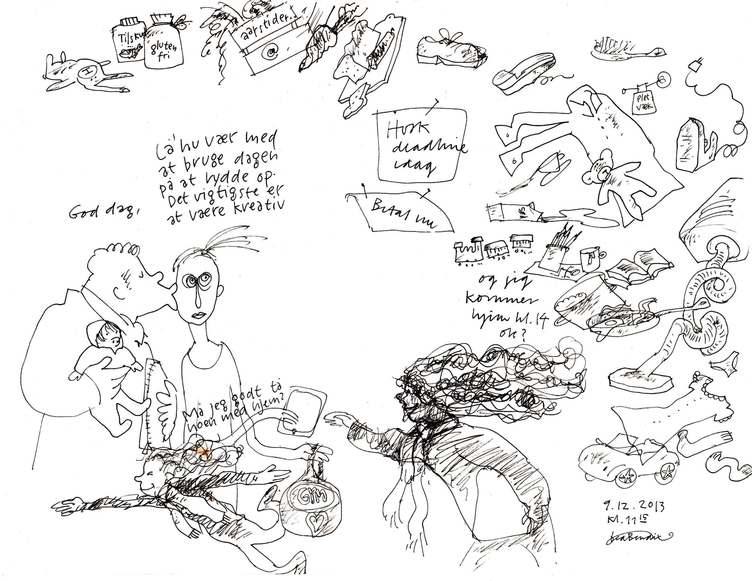 Formmæssigt udfordrer jeg altid mit stregudtryk og nye muligheder for hvordan tegninger kan bruges. Jeg arbejder både analogt og digitalt og afsøger forskellige udtryk. Jeg afprøver forskellige måder at bruge tegninger uden for bogmediet, i byrummet fx. I de seneste år interesseret mig for, hvordan man kan bruge tegninger på scenen i samarbejde med dansere eller orkestre. Og sidste år havde jeg pludselig fine oplevelser med at bruge tegninger som interviewform. Mit fag er en evig opdagelsesrejse og det er det jeg allerbedst kan lide ved det.